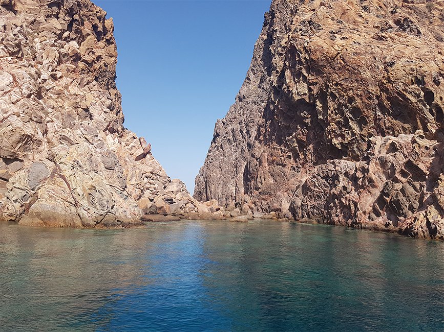 Als u de baai van Adamas uitvaart, ziet u eerst enkele kleine vissersdorpen met de kleurrijke syrmata. Nadat u goed en wel bekomen bent van deze huisjes met poorten in de kleuren van de regenboog, komt al snel het volgende schouwspel in uw vizier. Arkoudes is de verzamelnaam voor een aantal scherpe, grillig gevormde rotspartijen, midden in de zee bij de uitgang van de baai. Ze lijken wel een natuurlijke bescherming te vormen. Vanaf het strand van Plathiena ziet u ze liggen. Maar het beste zicht heeft u vanaf het water.