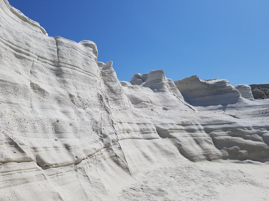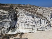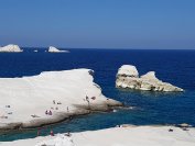 De kleurschakering van blauw en wit is kenmerkend voor de eilanden van de Cylcaden. Op Milos is dit niet alleen in de dorpen te zien aan de huizen met de blauw gekleurde luiken, maar ook in het landschap. Aan de noordkust ligt een waar natuurfenomeen: Sarakiniko.