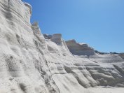 Het uiterste wit is hier te zien. De golven en de wind hebben hun uitwerking gehad op het poreuze lavasteen van de kust. De spierwitte rotsen vormen een soort van maanlandschap en geven het gebied een surrealistisch uiterlijk. Door de jaren is er een diepe inham ontstaan waar de zee vrij spel heeft en zijn de wanden vol met mysterieus ogende holen. Er is een klein strandje in de inham en hier kunt u ook zwemmen. Daar en op de omliggende rotsen ziet u niet alleen mensen met hun camera in de aanslag voor het vastleggen van een idyllisch plaatje, maar ook zonaanbidders komen hier aan hun trekken. De zon lijkt hier nog helderder te zijn, door de weerkaatsing van de zonnestralen op de witte bodem. Een wandeling over de rotsplateaus laat u verschillende taferelen zien. Het lijkt wel of u op de maan bent beland.