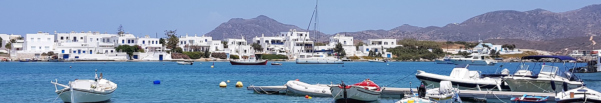 Het dorp ligt op het uiterste puntje aan de noordkant van het eiland. Langs de kade liggen verschillende tavernes die de strijd met elkaar aangaan wie de lekkerste gerechten op tafel kan zetten.