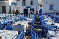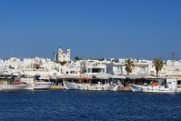 Naoussa ligt aan de noordkant van Paros, in een diepe baai. Het beschikt over de grootste vissersvloot van de Cycladen. Het fort in de haven dateert uit het byzantijnse tijdperk en het dorp werd gebouwd met dit fort als uitgangspunt. In de volksmond wordt dit fort ook wel Kastelli genoemd. Het fort is grotendeels bewaard gebleven en is een blikvanger in de haven. De haven is vol met kleurrijke vissersboten en u ziet hier de vissers dan ook druk in de weer met het aan land zetten van hun vangst en het boeten van hun netten. De inktvissen hangen in groten getale te drogen aan de rekken.