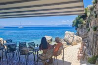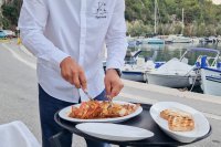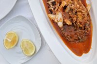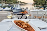 Wij hadden een bijzondere ervaring bij Mediteraneo in Gaios. Het restaurant bevindt zich iets voorbij de haven, aan het water, op weg naar de plek waar de grote boten aanleggen. We werden welkom geheten door de eigenaar, een enthousiaste man die tevens ook de kok van het restaurant was. We kregen een uitgebreide toelichting op de menukaart, waar hij qua ervaring vandaan kwam en wat zijn filosofie over eten was. Ook de wijn werd vol enthousiasme aan geprijsd. Als Corfioot ben ik bekend met bourdeto, het gerecht van schorpioenvis gegaard in een pittige tomatensaus. Altijd heb ik geweten dat dit een typisch Corfiotisch gerecht is. Echter, op Paxos is mij geleerd dat het ook op Paxos zijn oorsprong zou hebben. We gingen ervoor. We zaten heerlijk aan het water, in een rustig deel van Paxos. Vol trots liet de kok de vis zien die gebruikt ging worden voor het gerecht. Terwijl de vis bereid werd, genoten wij van de voorgerechten die op tafel kwamen en van de bijbehorende wijn. Wij werden compleet verrast toen het hoofdgerecht op tafel kwam. Het zag er heerlijk uit en de geur die ervan af kwam was onweerstaanbaar. Hier hadden we op gewacht! De vis werd keurig van de graat gehaald en op ons bord geserveerd. Het was echt genieten! Bij een volgend bezoek gaan we zeker weer naar dit restaurant.