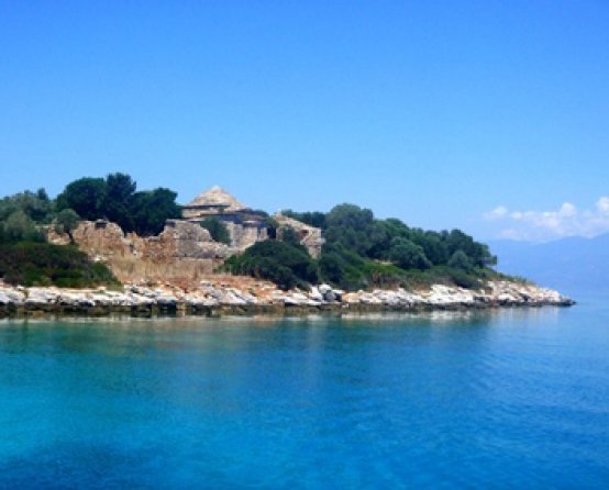 Gelegen aan de rand van Afissos, omringd door olijfbomen, met rustige ligging.