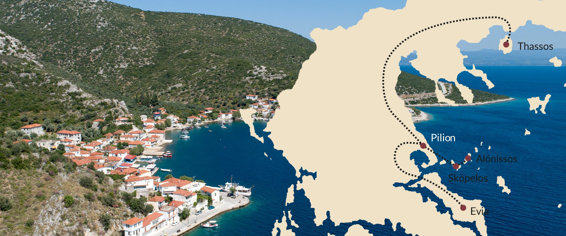 In het noordwesten van de Egeïsche Zee, tegenover de zuidpunt van Pílion, ligt de eilandengroep de Noordelijke Sporaden. Hierdoor is het uitstekend mogelijk om een vakantie op het vasteland te combineren met het ultieme eilandgevoel. Onderstaand geven we u een aantal suggesties. Mocht u nog een ander idee hebben van bestemmingen die u graag met Pílion zou willen combineren, schroomt u dan niet en vraagt u ons team naar de mogelijkheden.