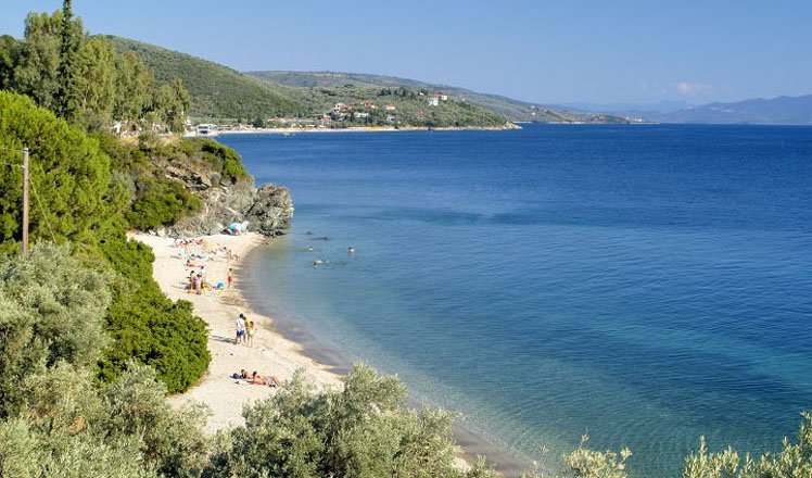Het dorp wordt aan beide zijden omzoomd door stranden, terwijl de zee vanaf het centrale deel van het dorp vanaf een van de terrassen overzien kan worden. Het is geen uitzondering dat u hier dolfijnen vrolijk door het water ziet springen. In Áfissos zijn drie kiezelstranden in de directe omgeving, die alle geleidelijk in zee aflopen. Dit zijn Kaliftéri, Abovós en Lagóudi. Ook in Áfissos reiken de bomen tot aan het water, zodat men er kan genieten van een siësta in de schaduw. Behalve een gezellige middag in het dorp of een bezoek aan een van de stranden, kunt u vanuit Áfissos mooie wandelingen maken naar onder andere Lefókastro en Afétes.