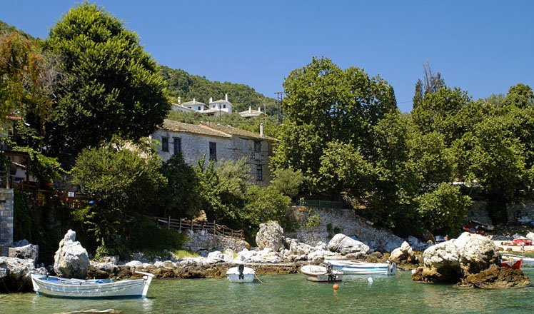 Damóuchari is een natuurlijke haven, een uniek aspect aan de Egeïsche kust van Pílion. De plaats dateert uit de Middeleeuwen, getuige de ruïnes van een oude nederzetting en de Byzantijnse burcht.