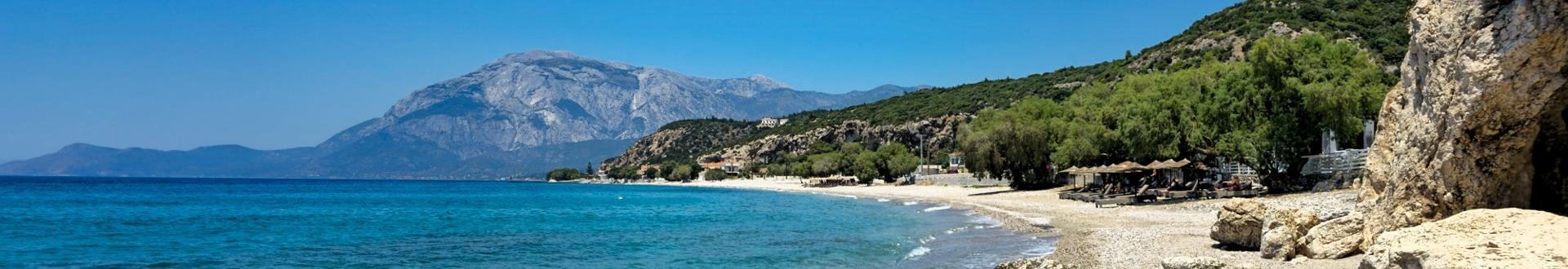 Een wandeling van de ene kant naar de andere kant van het dorp neemt al gauw een half uur tot een driekwartier in beslag. En als u neerstrijkt bij een van de tavernes of kafenia, dan duurt het nog wat langer voor u uw eindpunt bereikt heeft. Er is een kleine minimarkt met wat essentiële levensmiddelen en het dorp heeft vier tavernes en een kafenion. Er is een hotel waar u ook gebruik kunt maken van het terras voor een drankje of een snack. Het langgerekte strand met her en der een boom voor natuurlijke schaduw biedt weinig faciliteiten. Op twee plekken na, daar zijn ligbedden en parasols te huur. U begrijpt dat dit voor een relaxt verblijf een superplek is.