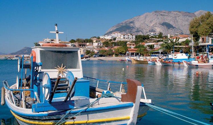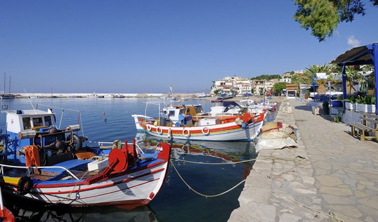 Aan de kade langs het knusse haventje zijn diverse tavernes. De wiebelende blauwe stoelen nodigen uit voor een heerlijke lunch of avondmaaltijd. De verse vis wordt veelvuldig geserveerd in deze tavernes. Ook bestaat er de mogelijkheid om vanaf de pier zelf een hengel uit te gooien. Wellicht wordt deze poging beloond met een goede vangst.