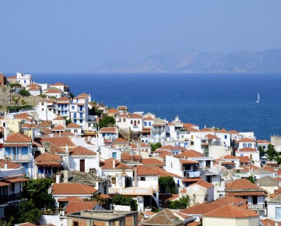 Skopelos-stad, ook wel Chora genoemd, wordt geschouwd als de lieflijkste havenstad van de Griekse eilanden. In de stad bevinden zich de welbekende witte huisjes met blauwe luiken en bloemrijke patio's.