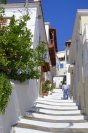 Zoals op veel eilanden het geval is, wordt ook hier de stad in de volksmond Chóra genoemd. Bij aankomst met de boot ligt Chóra vredig tegen de hellingen, in een beschermde baai aan de noordkant van het eiland. Als een halve cirkel tegen de top van een heuvel, gekroond door een burcht.