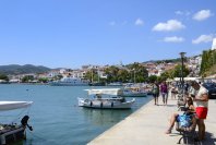 In het noorden van de stad staat hoog boven op de rots de kerk van Panagía ston Pírgo, de Heilige Vrouwe op de Toren, uit de 17e eeuw. Van hier heeft men een prachtig uitzicht over de gehele baai en het verderop liggende eiland Alónnisos. De meeste tavernes, bars en cafés bevinden zich aan de gezellige boulevard van de stad. Vooral in de avond is hier volop leven wanneer de Grieken hun dagelijkse avondwandeling langs de zee maken om daarna neer te strijken op een terras om te genieten van de zwoele avonden. In het Volkenkundig Museum van de stad zijn voorwerpen ondergebracht die de geschiedenis en de traditionele levensstijl van de eilandbewoners weerspiegelen.