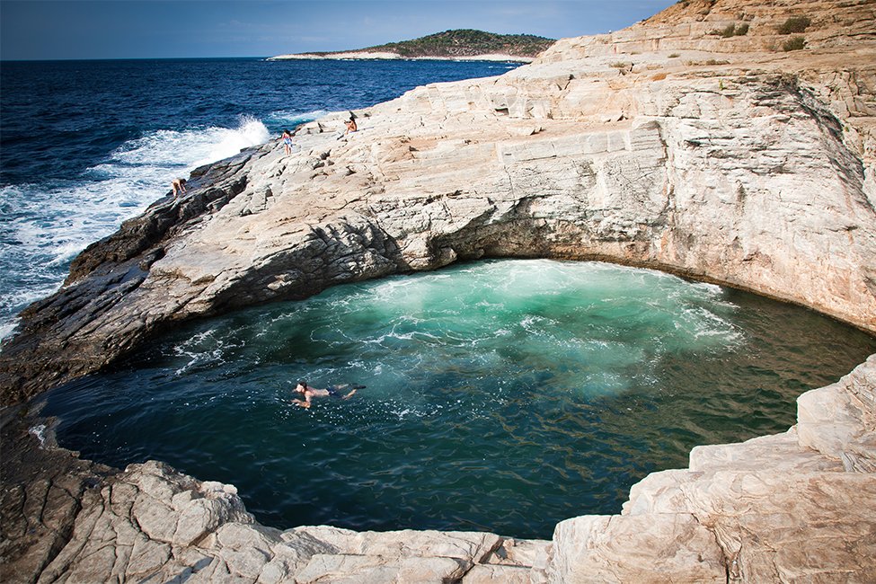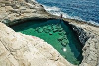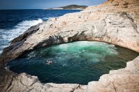 Om u een idee te geven van hoe groot het natuurlijke zwembad eigenlijk is: het water is twintig bij vijftien meter, en drie meter diep. Neem een duik vanaf een van de omringende rotsen, verken de bodem van de poel en blijf even stil in het water om te genieten van het uitzicht op de zich uitstrekkende zee. Genoeg van het water? Sla uw handdoekje uit op een van de rotsen, sluit heel even uw ogen en voel alleen warme zonnestralen op uw huid. Als u diep ademhaalt, ruikt u de geur van de frisse, ziltige zee.