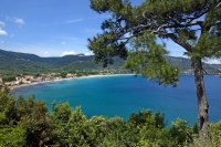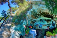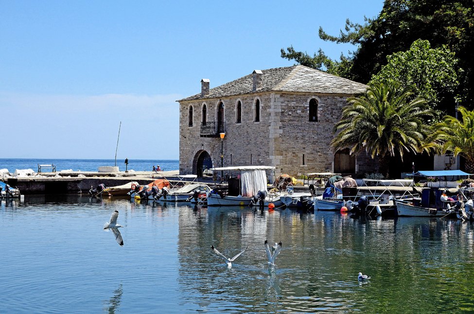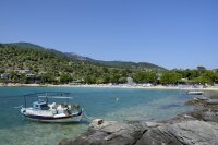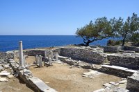 Op weg naar het westen passeert u in het zuiden nog enkele populaire badplaatsen, maar uw voornaamste gezelschap is de verstrekkende blauwe zee die achter de rotsachtige kust ligt. U komt het dorpje Alyki tegen, dat een belangrijke rol heeft gespeeld in de geschiedenis van Thassos. De verspreide ruïnes zijn hier stille getuigen van. Verderop, op de top van de heuvel, verschijnt het vrouwenklooster Archangelou in uw vizier. Het klooster balanceert op een steile klif en biedt spectaculair uitzicht. Verder zuidwaarts, moeilijk bereikbaar maar een natuurwonder om te zien, ligt het bassin van Giola. Door erosie is er een smaragdgroene poel ontstaan.