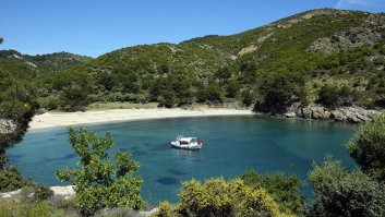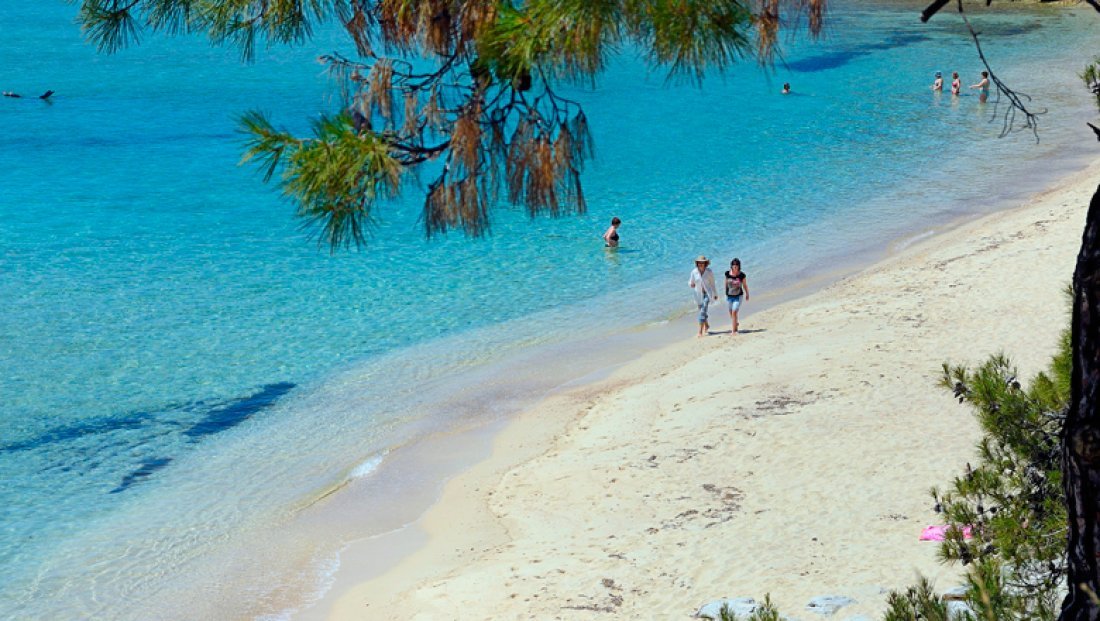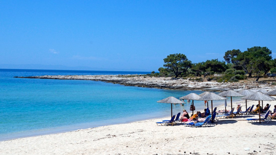 Het eiland beschikt over een kustlijn van maar liefst 95 kilometer, bezaaid met de mooiste stranden van Griekenland. Er zijn zowel kleine inhammen en baaien als grotere, uitgestrekte stranden. Veelal omringd door een weelderige natuur en met fijn zand en kristalhelder water. Hieronder een greep uit het aanbod aan stranden. We beginnen ons rondje in het noordoosten van het eiland.