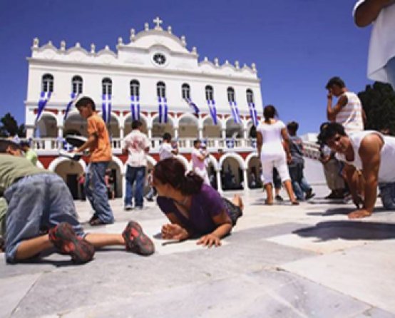 Bij een bezoek aan Tinos zullen u enkele dingen direct opvallen. De vele duiventillen in het landschap, de aanwezigheid van marmer en de aanhang van geloof en religie. Gelovigen danken en vereren de heiligen, ook wel tamata genoemd. Wanneer u in Chora bent zal de kerk Agia Panagia u direct in het oog springen. Het is een erg indrukwekkend bouwwerk dat veel wordt bezocht door bedevaartgangers. Buiten de stad heerst kalmte komt men tot rust van de drukte van de stad.