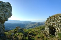 Tegenwoordig is vooral het uitzicht dat vanaf de ruïnes een indrukwekkend beeld verschaft. Vredige berghellingen met hier en daar pittoreske witte dorpen vormen het decor. Binnen de muren is het grote, marmeren kruis Het Heilig Hart van Jezus een blikvanger. Na zonsondergang wordt het kruis dat prijkt op de top van de berg, verlicht en is van verre te zien. Behalve het katholieke gedenkteken op de berg, is er tevens een orthodoxe aanwezig; Zoodogos Pigi, oftewel een levensgevende bron.