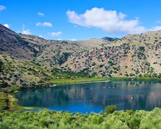 Het meer van Kournas is volgens kenners het enige, natuurlijke zoetwatermeer van Kreta.