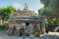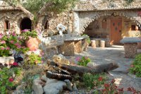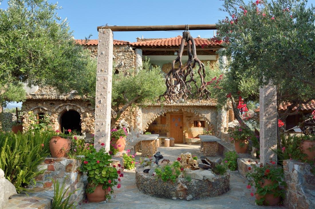 In de heuvels boven Kalyves ligt een wel heel bijzondere taverne. Hier is het heden in volle harmonie met het verleden verweven en werden de krachten van de natuur verenigd met de passie en creativiteit van een bijzonder mens. Met veel liefde wordt hier niet alleen met uitsluitend verse en lokale producten een rijke verscheidenheid aan traditionele Kretenzische gerechten bereid, maar minstens net zo indrukwekkend is het bijzondere decor.