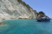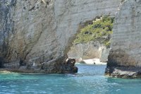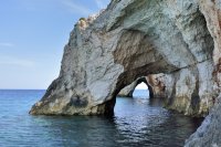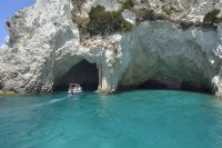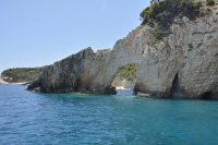 Langs de kustlijn stijgen hoge, steile rotsen strak boven het water uit. Ze zijn krijtwit en lichtgrijs van kleur, maar hebben hier en daar een donkere, zwarte inham. Dit zijn de grotten van Zakynthos. Als u op pad gaat met een kleine boot, dan kunt u de grotten zelfs in varen.