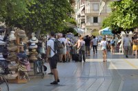 Maar dat dit plein omringd is door statige gebouwen, betekent niet dat het er niet gezellig is. Sterker nog, het is de hele dag door bezaaid met vakantiegangers en ook de bewoners van Zakynthos weten het plein te vinden. Samen genieten van de dag. Spelende kinderen die achter elkaar aanrennen of een stukje fietsen. Ouders die, vanaf een bankje of in het café met een kopje koffie, ze nauwlettend in de gaten houden. Stelletjes maken een wandeling, hand in hand, en hier en daar staat een groepje ouderen die elkaar de mooiste verhalen van de dag vertellen.