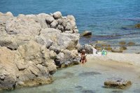 Gelegen tussen de pijnbomen. De familie heeft een taverne met een goede keuken.