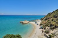 Het is niet met de auto bereikbaar en de auto moet dus boven aan de rand van de rotsen blijven staan. Het pad naar beneden vraagt om een paar stevige schoenen. Van bovenaf ziet de baai er al prachtig uit. Het water is heel licht blauw en licht troebel door de vette substantie van de collageen die hier in het water voorkomt. Dit heeft een witte kleur en is lichter in gewicht dan het zeewater. Daardoor blijft het aan de oppervlakte drijven. Het zijn een soort witte vlokken die aan de oppervlakte drijven. Collageen is goed tegen rimpelvorming in de huid. Blijf enige tijd dobberen in het vettige water en u komt er als herboren uit. Het collageen zorgt voor een heerlijk zachte huid. Het water bevat tevens een hoge concentratie zwavel. Dit heeft een helende werking op diverse aandoeningen zoals reuma, artritis en psoriasis. De temperatuur van het water wisselt heel sterk. Op sommige plaatsen is het ijs- en ijskoud en elders heeft het een aangename temperatuur. Houd hier rekening mee als u gaat zwemmen, zodat de kou u niet overvalt. Het strand zelf bestaat uit grote, witte kiezels. Als u hierop gaat liggen, voelt het als een natuurlijke massage. Het is een natuurlijke spa en zwemmen is goed voor vele kwalen. Het mineraalrijke water heeft behalve de fysieke uitwerking ook een therapeutische en ontspannende werking. Kortom, een bad in de zee zou een positieve invloed hebben op de eerder genoemde kwalen, rust bieden aan een vermoeide geest en zorgen voor een gladde huid. Hiervoor dient u de lucht van de zwavel wel te trotseren. Het is even een tocht om er te komen, maar het is dan ook beslist de moeite waard. U zult hier overigens niet de enige zijn die de baai bezoekt. Het strand is niet heel groot en de plaats dus beperkt. Er is een kantina waar u een snack en een drankje kunt verkrijgen. De zon is er vanaf een uur of half 11. Dus wilt u het zonder de grote mensenmassa ervaren, ga er dan vroeg heen.