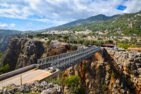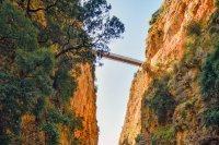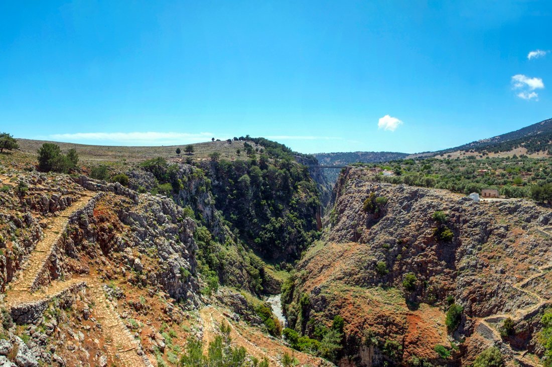 Lang tijd was het alleen mogelijk om de overkant van de kloof te bereiken door een wandelpad naar de kloof af te dalen en vervolgens weer omhoog te klimmen. Hier kwam verandering in toen de redersfamilie Vardinogiannis de bouw van een stalen brug financierde. Deze brug verbindt het dorp Aradena met het dorp Anopoli en is met een hoogte van 138 meter een van de hoogste bruggen van Griekenland. U heeft hier een prachtig uitzicht op de kloof en in ongeveer een uur kunt u nu via de brug van Aradena naar Anopoli wandelen. Wees overigens niet verbaasd wanneer u waaghalzen van de brug ziet springen, want de brug is een geliefd ontmoetingspunt voor bungeejumpers.
