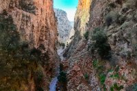 De totale lengte van de kloof bedraagt 15 km. De meest gebruikelijke toegang echter ligt ergens op de helft van de kloof, dicht bij het dorp Aradena, op korte afstand van Chora Sfakion. Archeologische vondsten in het gebied doen vermoeden dat Aradena op de plaats van het oude Aradin of Heradin ligt, een stad die waarschijnlijk door de Feniciërs werd gesticht. Wanneer u hier toch in de buurt bent, dan is het de moeite waard een kijkje in de kerk van de Aartsengel Michaël te nemen. Hier zijn fraaie muurschilderingen uit de 14e eeuw te zien.