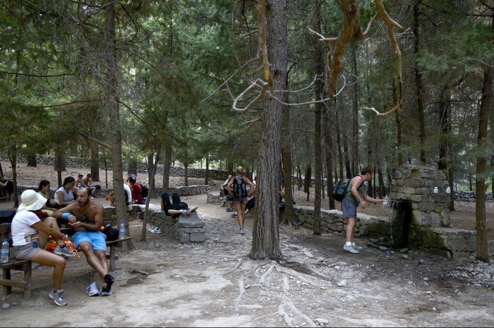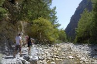 De gehele wandeling naar het eindpunt aan de kust, Agia Roumeli, kost minstens vijf uur. De meeste wandelaars stappen in deze plaats dan ook op de boot die hen naar Sougia of naar Chóra Sfakion brengt. Van hier kunt u de bus nemen naar Chania-stad. Uiteraard is het ook mogelijk om na de wandeling te overnachten in Agia Roumeli.
