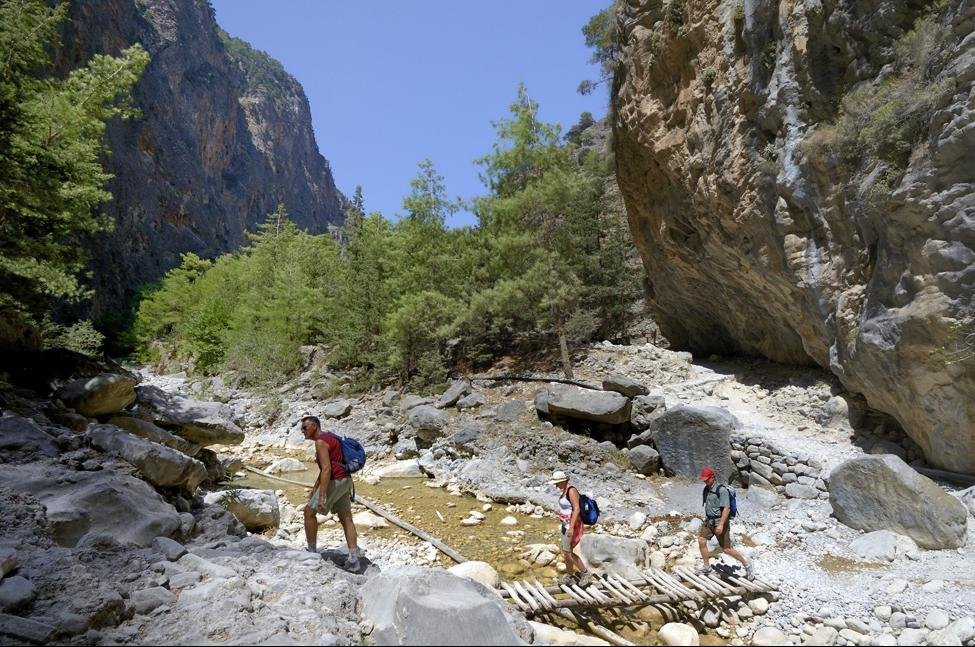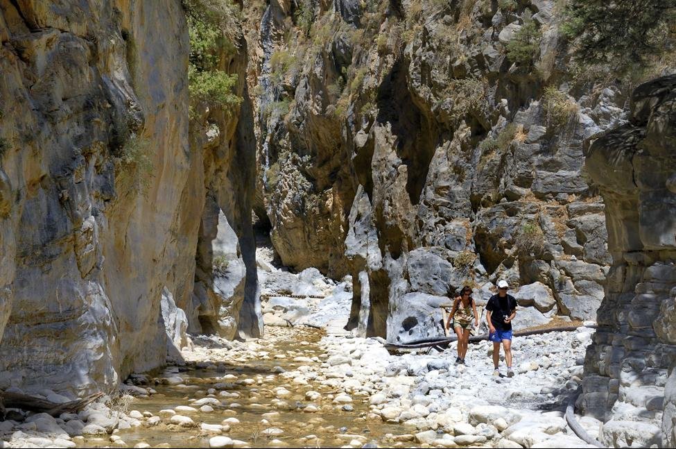 Kort na het Samaria-dorp komt u langs het Byzantijnse kerkje van de heilige Maria van Egypte, waaraan dit dorp zijn naam te danken zou hebben. Op dit punt heeft u ongeveer de helft van de wandeling gehad. Samaria is ook het gebied waar de kri-kri, de Kretenzische berggeit, nog voorkomt en beschermd wordt. De laatste vier kilometer zijn het indrukwekkendst. Hier naderen de loodrechte, wel 300 meter hoge rotswanden elkaar soms tot op drie meter. Deze nauwe doorgang wordt de Sideroportes, oftewel De IJzeren Poort, genoemd. Wanneer u de hele tocht te zwaar vindt, kunt u vanaf hier met de boot naar Agia Roumeli. U loopt dan in tegengestelde richting het laatste nauwe stuk en keert dan terug.