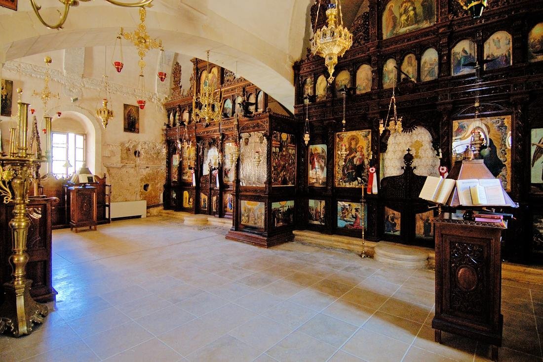 Rond de binnenplaats van het klooster zijn nog altijd de monnikencellen te zien. Vooral opvallend is de klokkentoren van het klooster. Deze dateert uit 1637 en is, samen met die van het Arkadi-klooster, de enige bewaard gebleven Venetiaanse klokkentoren op Kreta. De kloosterkerk in het midden van de binnenplaats heeft drie koepels en in de kerk zijn onder andere een mooie houten iconostase en bisschopstroon uit de 19e eeuw te zien. Ook worden hier verschillende relieken bewaard, waaronder oude handschriften uit de 17e eeuw.