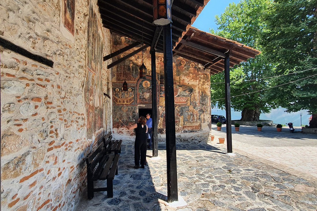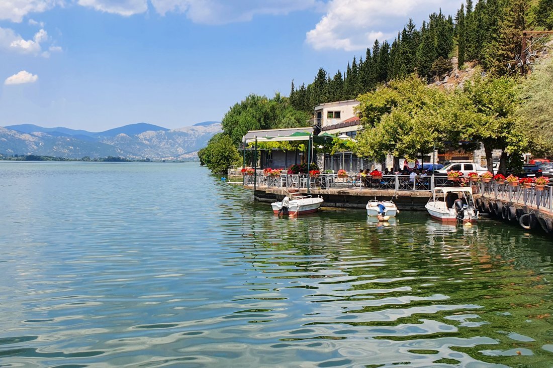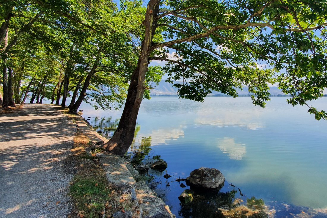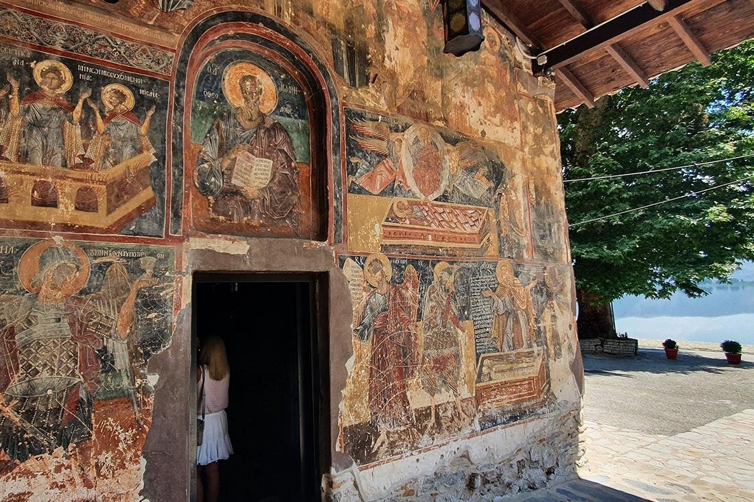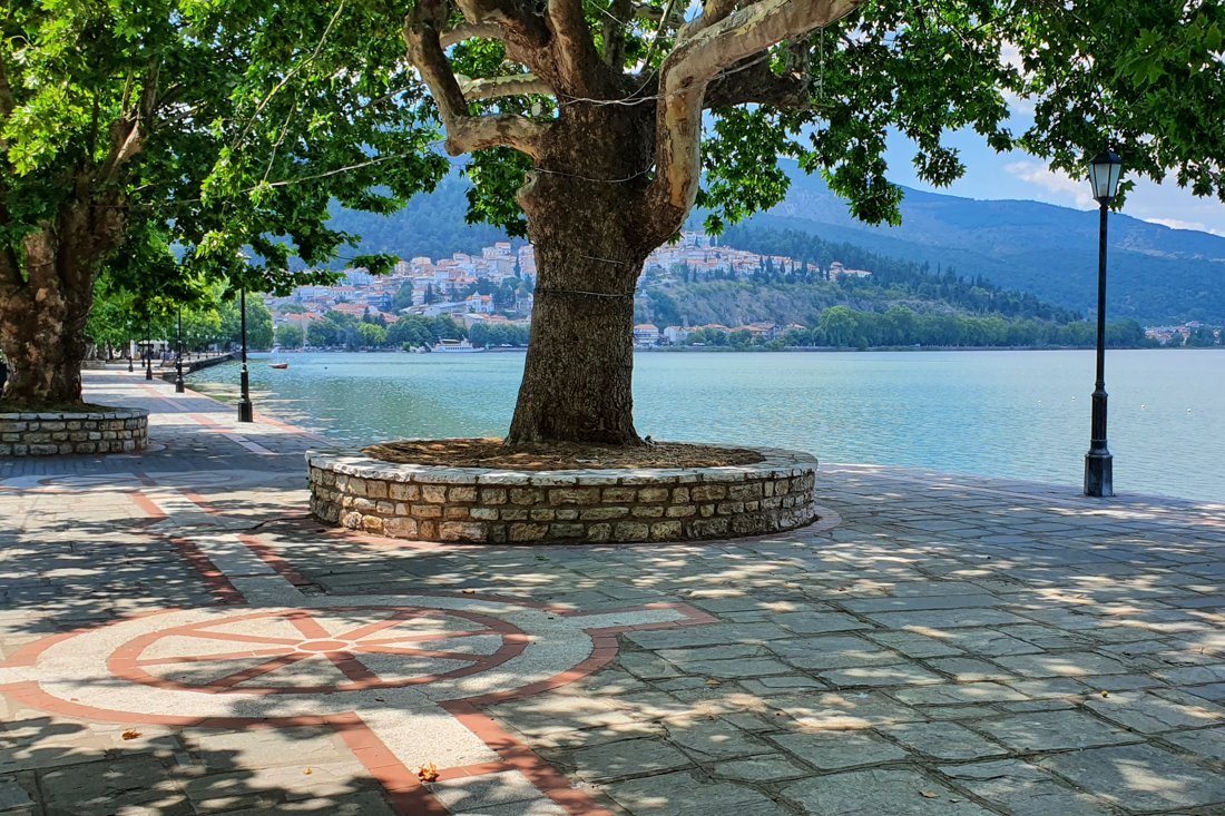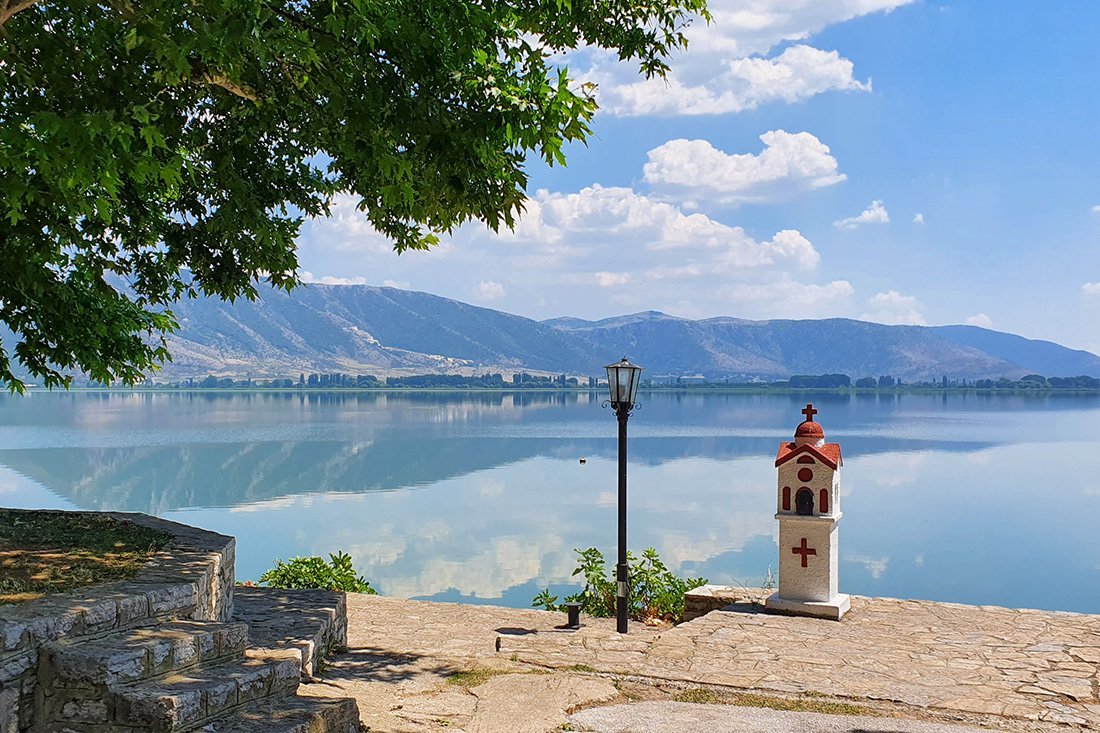 Op de landtong in het meer bevinden een aantal interessante bezienswaardigheden. Hier liggen onder andere de oude wijken Doltso en Apozari, de Drakengrot en het Byzantijnse Panagia Mavriotissa-klooster. Voor een prachtig uitzicht over het meer en de stad met in de verte het Vitsi- en Grammos-gebergte is de klim naar de Profitis Ilias-kerk en het uitkijkpunt Agios Athanasios een aanrader. Vanwege de vele kloosters zal het u niet verbazen dat er ook veel monniken zijn. Het is dan geen uitzondering dat uw buurman op een terras de pij aanheeft. Dit weerhoudt hen niet voor het drinken van een wijntje of een glas tsipouro.
