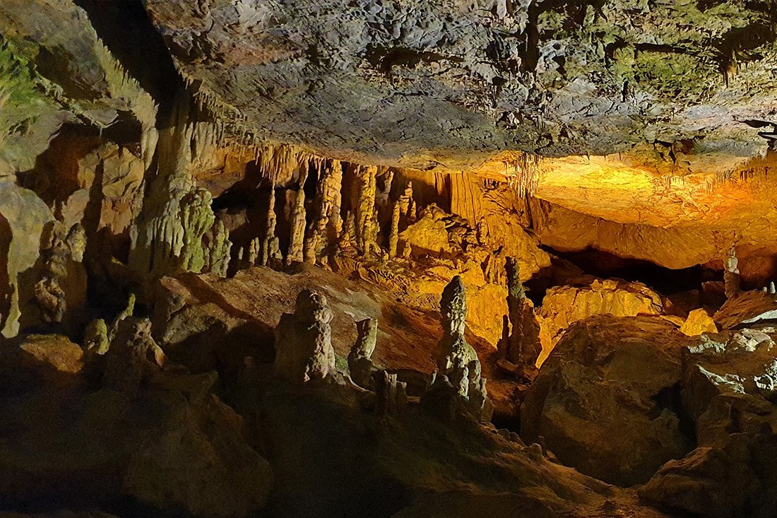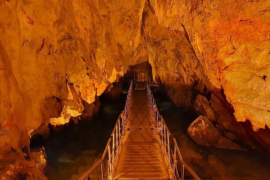 Volgens een oude legende zouden zich in deze grot vroeger goudmijnen hebben bevonden. Deze werden bewaakt door een vuurspuwende draak en het is aan deze draak waaraan de grot zijn naam te danken heeft. Sporen van menselijke aanwezigheid werden in de grot nooit gevonden. Wel werden er botten van de uitgestorven holenbeer aangetroffen. Een route van 300 meter leidt de bezoeker door tien kamers met indrukwekkende stalactieten en stalagmieten. In de grot bevinden zich eveneens zeven ondergrondse meertjes die met houten bruggen en vlonders met elkaar verbonden zijn. Bij de uitgang is een kleine ruimte als museum ingericht.