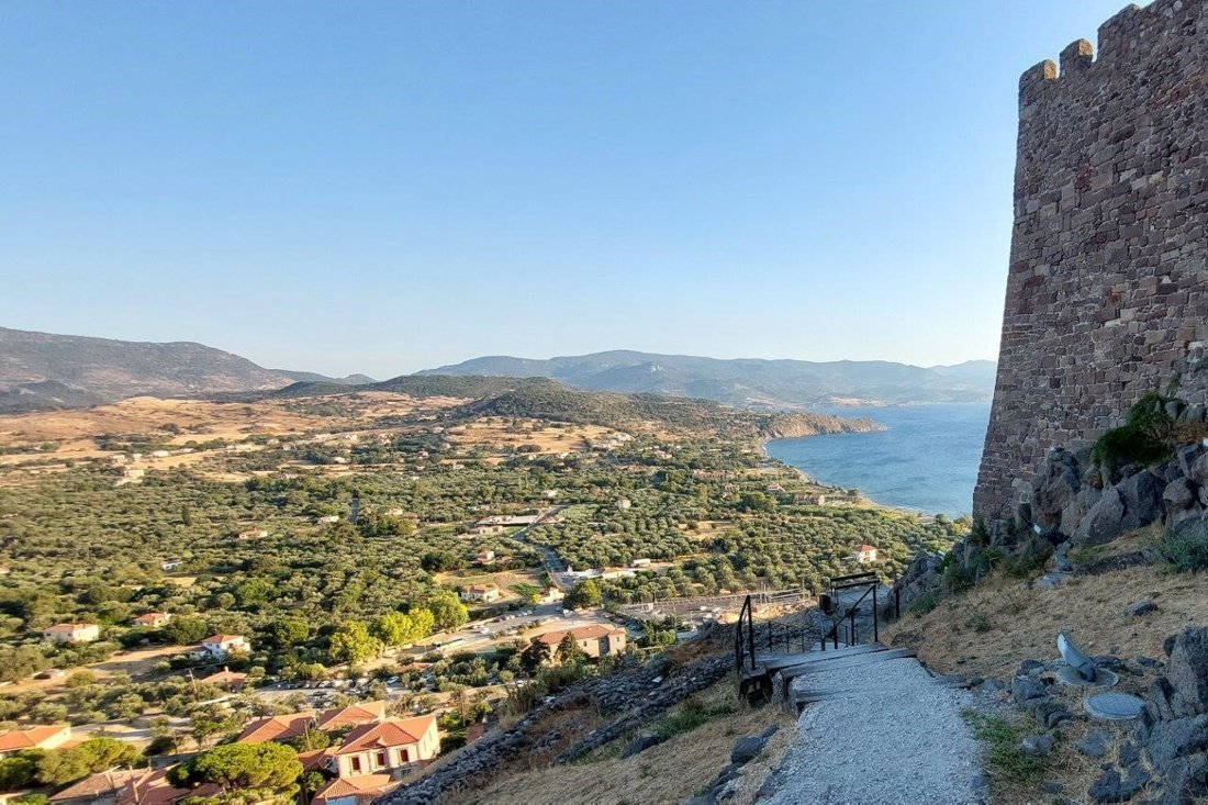 Tijdens zijn naar eigen zeggen ‘superleuke’ vakantie op Lesbos, maakte mijnheer Bergsma deze foto van het weidse uitzicht bij de burcht van Molivos.