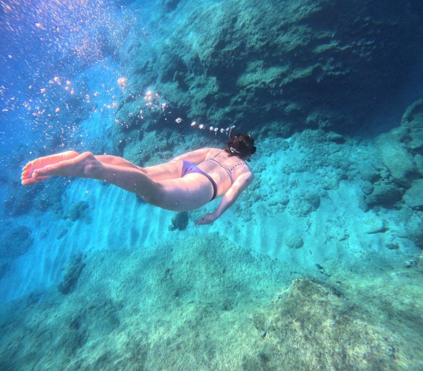 In Plakias dook mevrouw De Jong letterlijk de onderwaterwereld in. Al snorkelend ontdekte ze een wonderlijke variatie aan zeedieren: koraalduivels, sepia’s, kogelvissen en zelfs barracuda’s, allemaal in de heldere wateren rondom Skinaria Beach.