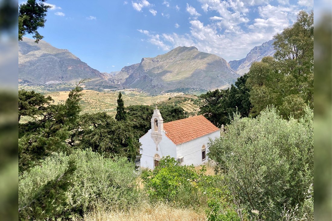 Familie Vis ging op ontdekkingstocht en kwamen midden in het landschap bij Gianniou dit kerkje tegen.