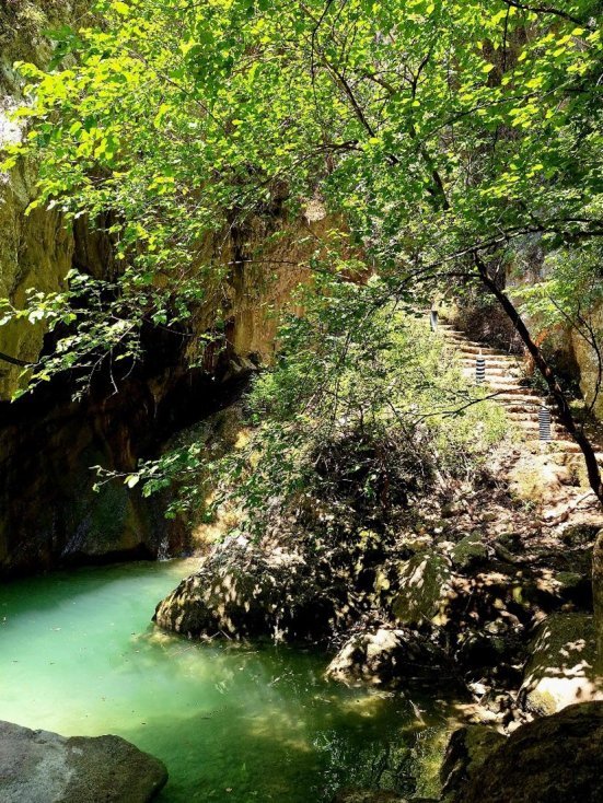 Mevrouw Boerboom bracht tijdens haar vakantie in Paleros een dag door op Lefkas, waar ze de trap naar de Nidri-waterval fotografeerde.
