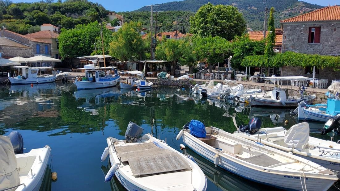 “Dit is voor mij Griekenland.”, Meneer de Vringer genoot tijdens zijn bezoek aan Skala Sykaminia van kleinschalig Griekenland.