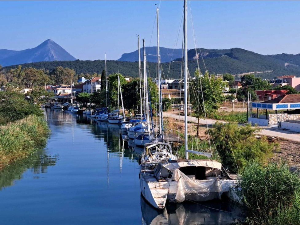 Meneer Loenis pauzeerde even op de nieuwe brug over de Acheron om dit schilderachtige aanzicht in Ammoudia te fotograferen.