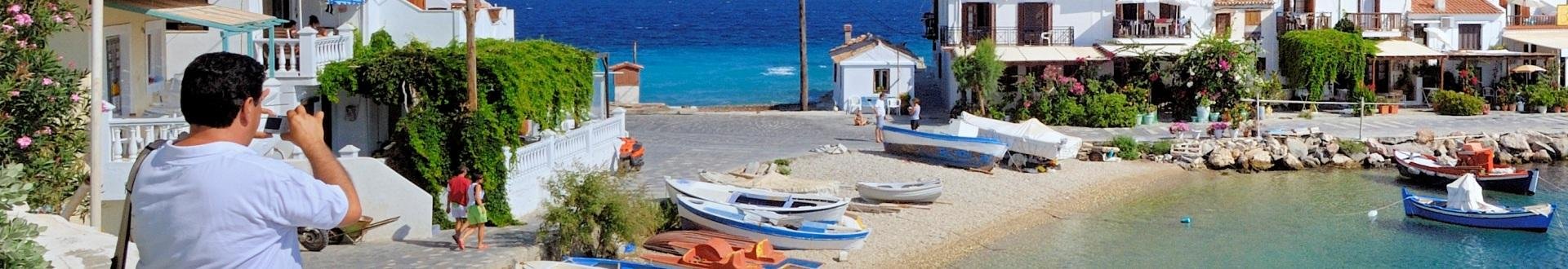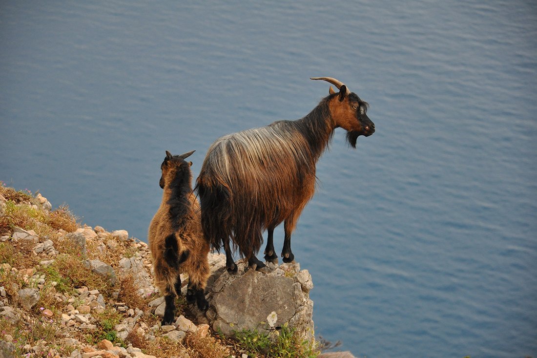 Familie den Boer trof op Kefalonia twee geiten die, net als hen, van het uitzicht over Assos leken te genieten.