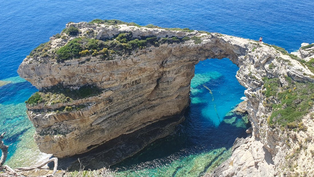 Na een mooie wandeling tijdens zijn vakantie op Paxos werd meneer Katuin getrakteerd op dit prachtige uitzicht op de Trypitosboog.