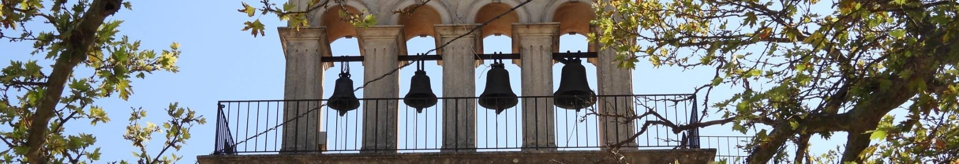 De door gebladerte omlijste klokkentoren van het Agios Gerasimos-klooster werd door mevrouw Tellendonk prachtig op de foto gezet tijdens haar vakantie op Kefalonia.