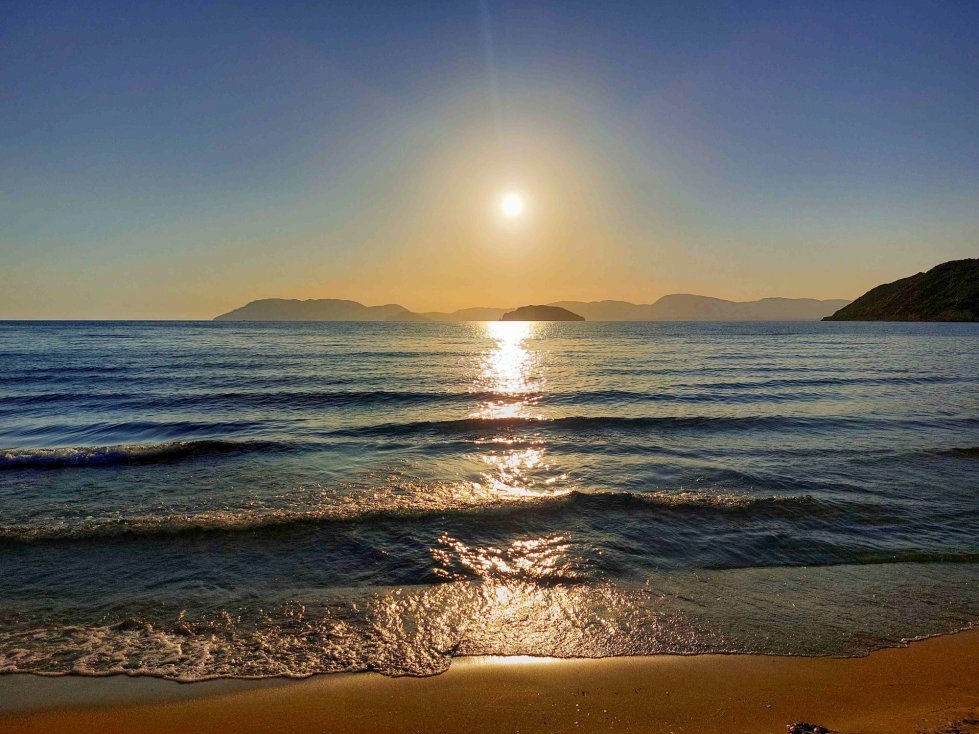 Mevrouw Veugelers haalt het beste uit haar tijd op Zakynthos en genoot van een heerlijke zwempartij bij zonsondergang op het prachtige Gerakas Beach.