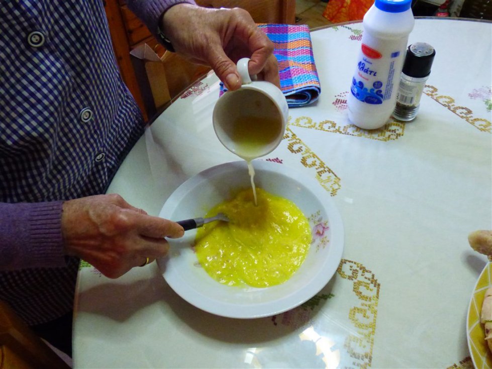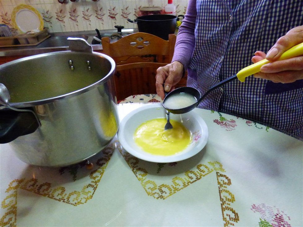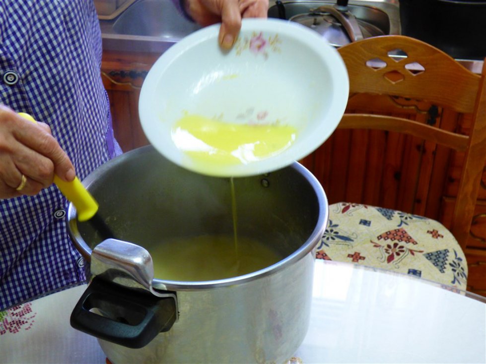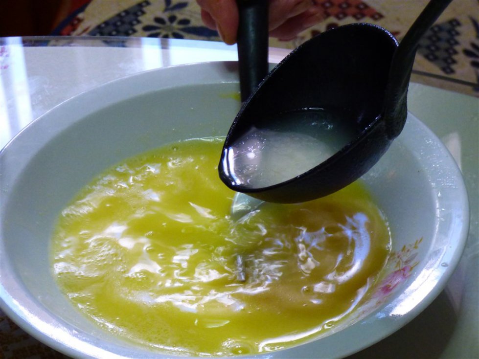 Klop de eieren los in een kom en voeg tijdens het kloppen het sap van een citroen toe. Blijf het mengsel roeren terwijl u twee soeplepels soep toevoegt. Vanwege het temperatuurverschil tussen het mengsel en de soep is het belangrijk om dit heel rustig te doen, dit voorkomt het stollen van het eiwit. Hierna wordt het mengsel rustig aan de soep toegevoegd, blijf de soep goed doorroeren. Breng de soep naar wens op smaak met peper en zout. Serveer de soep met een schijfje citroen.