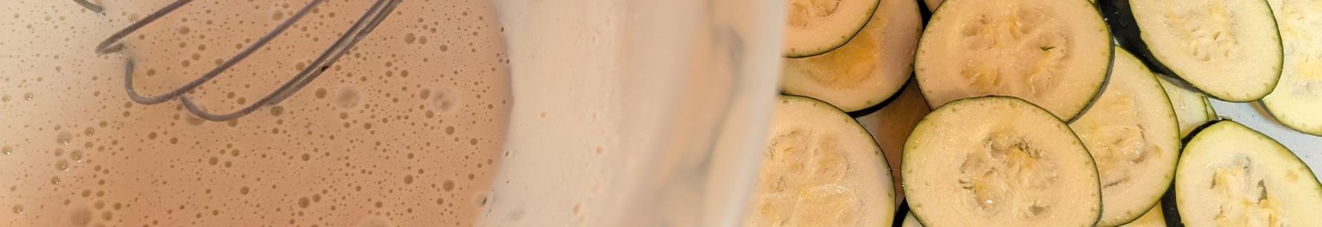 Was de courgettes en snij ze in plakken van ongeveer 1 cm dik.