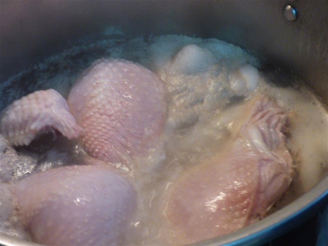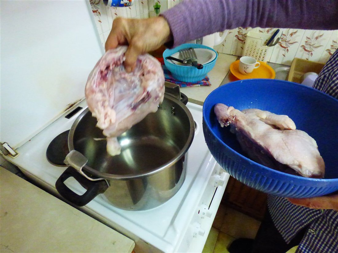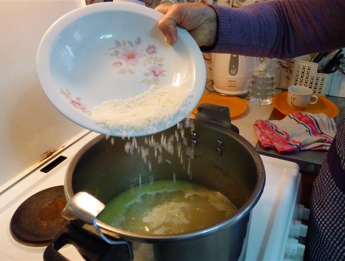 Was de kip, snijd deze in stukken en leg de stukken in een pan. Vul de pan met water en zet hem op het vuur. Schuim de oppervlakte af als het water begint te koken. Dan worden de olijfolie, selderij, ui en wortels erbij gedaan, laat dit op middelhoog vuur doorkoken. Laat het zachtjes sudderen totdat de kip gaar is. Haal dan de kip eruit en leg deze apart. Zeef de soep in een nieuwe pan, zodat de groenten hiervan gescheiden worden. Breng de soep opnieuw aan de kook terwijl de rijst wordt toegevoegd en laat het circa tien minuten koken totdat de rijst gaar is. We halen de pan van het vuur en beginnen aan de ei-citroen saus.