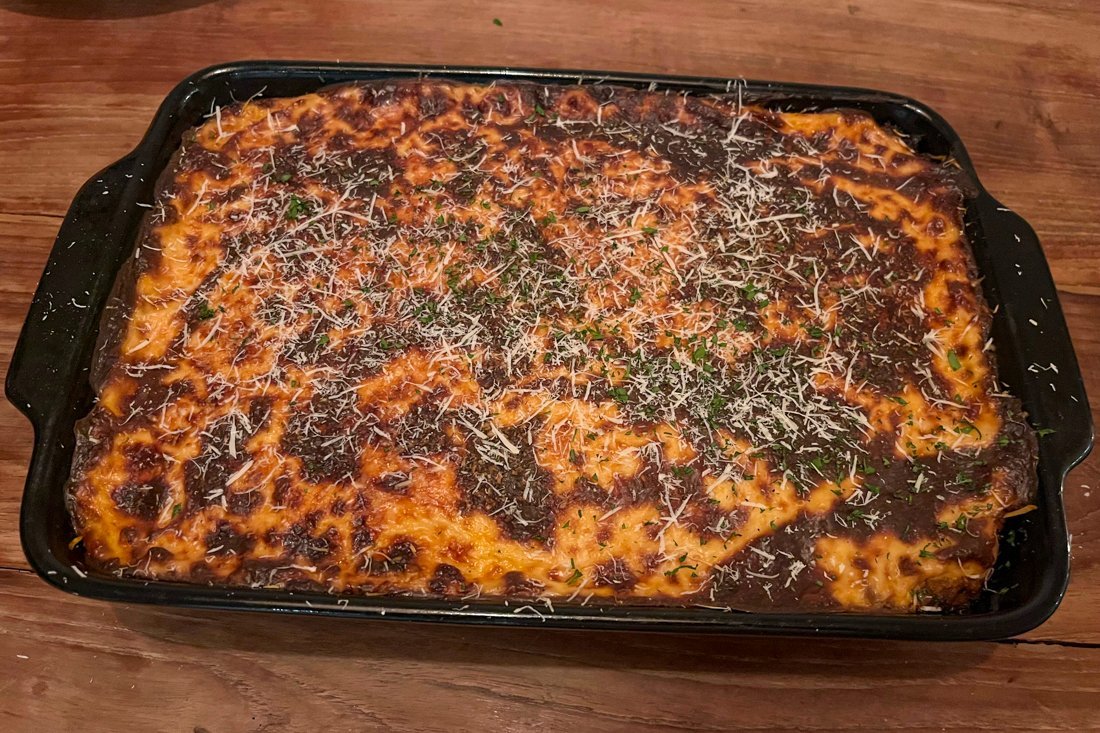 Laat de moussaka even afkoelen alvorens aan te snijden.