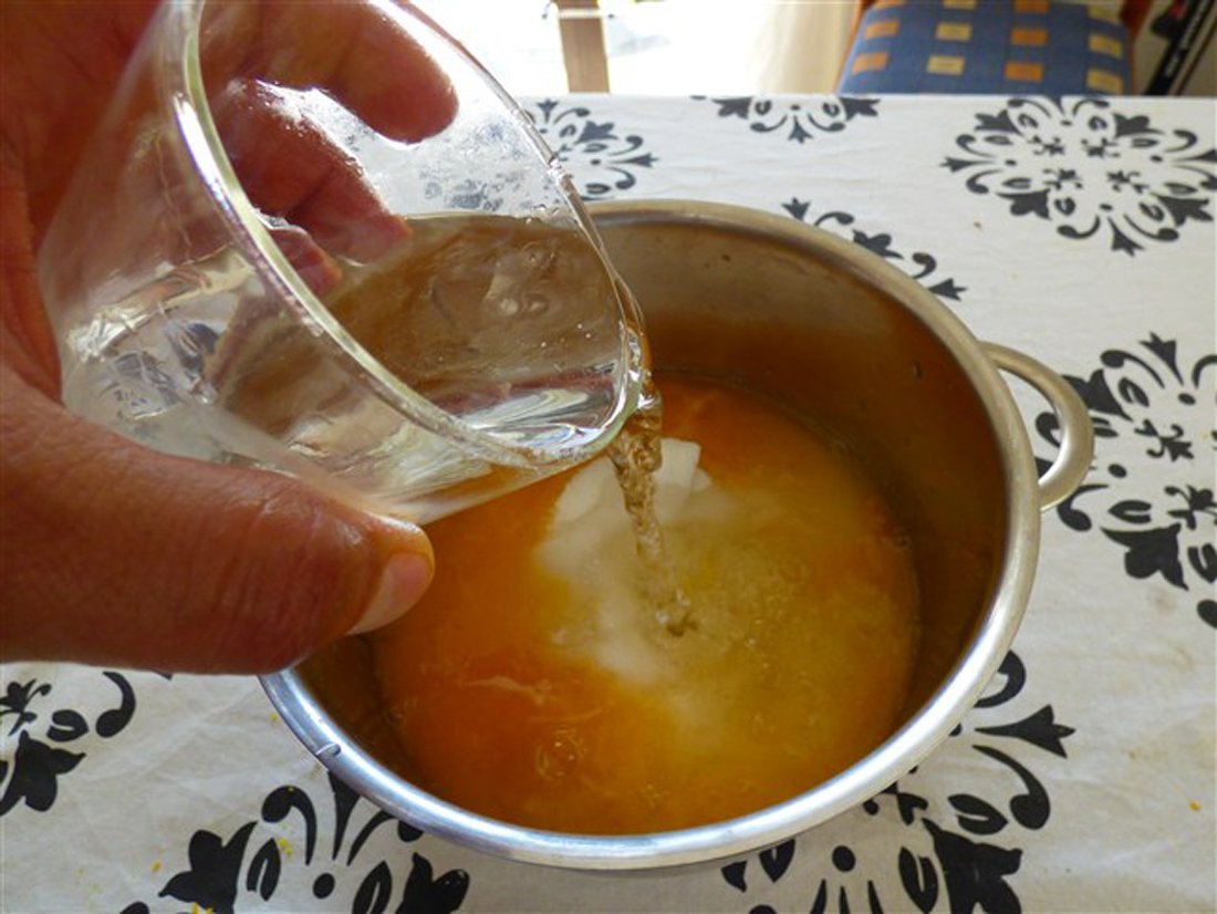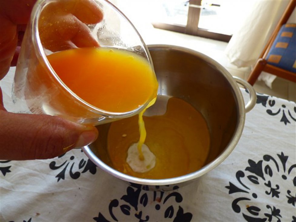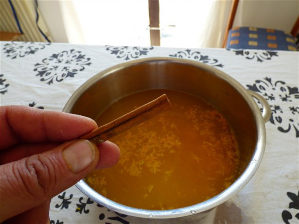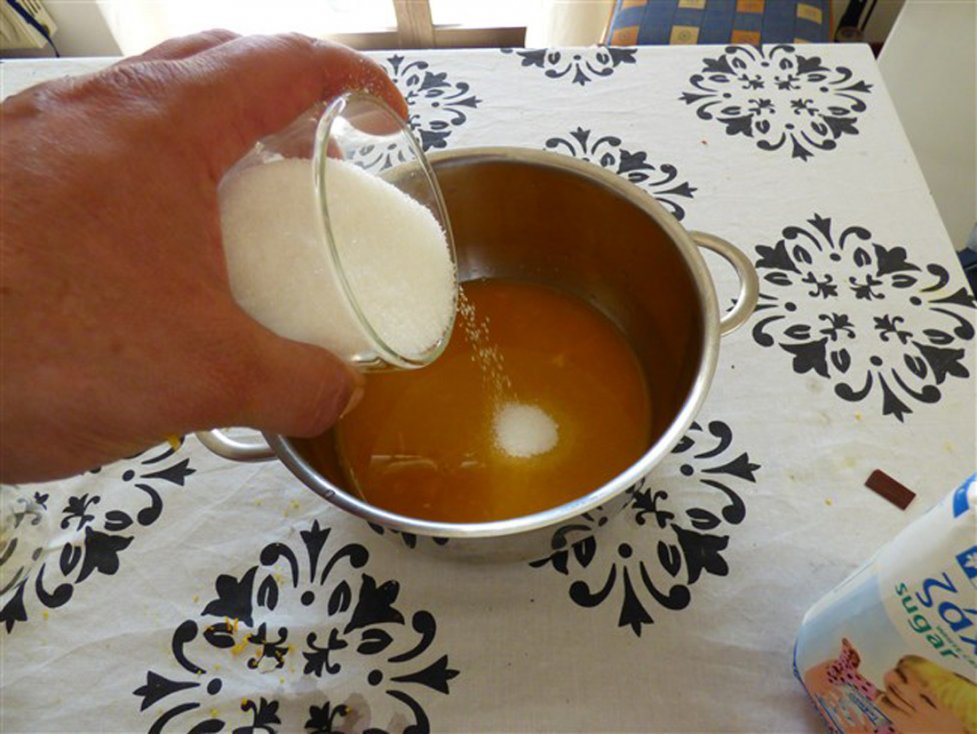 We maken eerst de siroop, zodat deze af kan koelen gedurende de tijd dat we de cake bakken. De siroop wordt koud toegevoegd aan de warme cake, waardoor het goed opgenomen wordt. Doe de ingrediënten voor de siroop in een kleine pan en breng het aan de kook. Laat het 10 minuten zacht doorkoken. Haal de pan van het vuur en laat de siroop afkoelen.