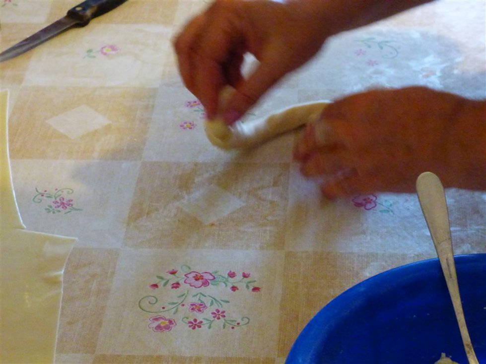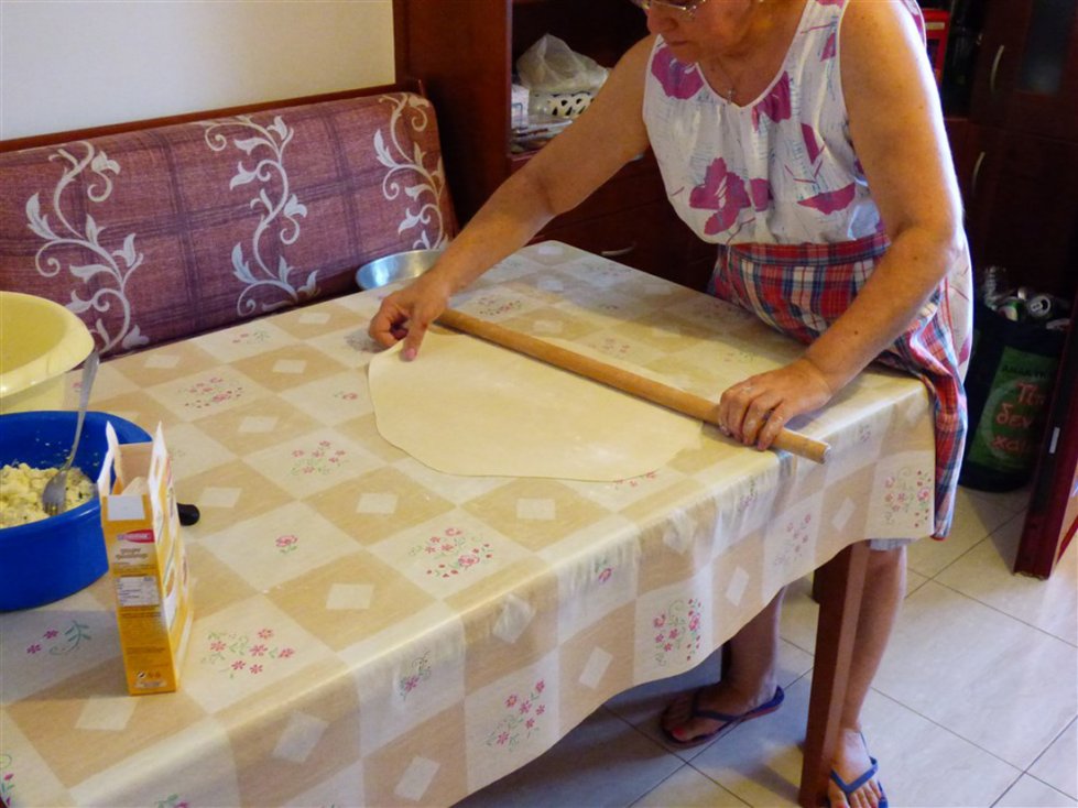 Tiropita is een bladerdeeggerecht, dat we ook tegenkomen op andere Griekse bestemmingen. Echter bij deze tiropita wordt gebruik gemaakt van de lokale kaas, genaamd kalatháki.