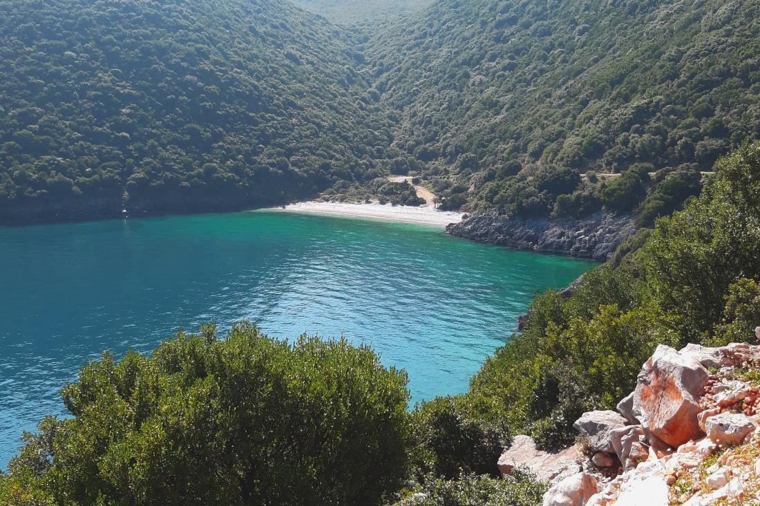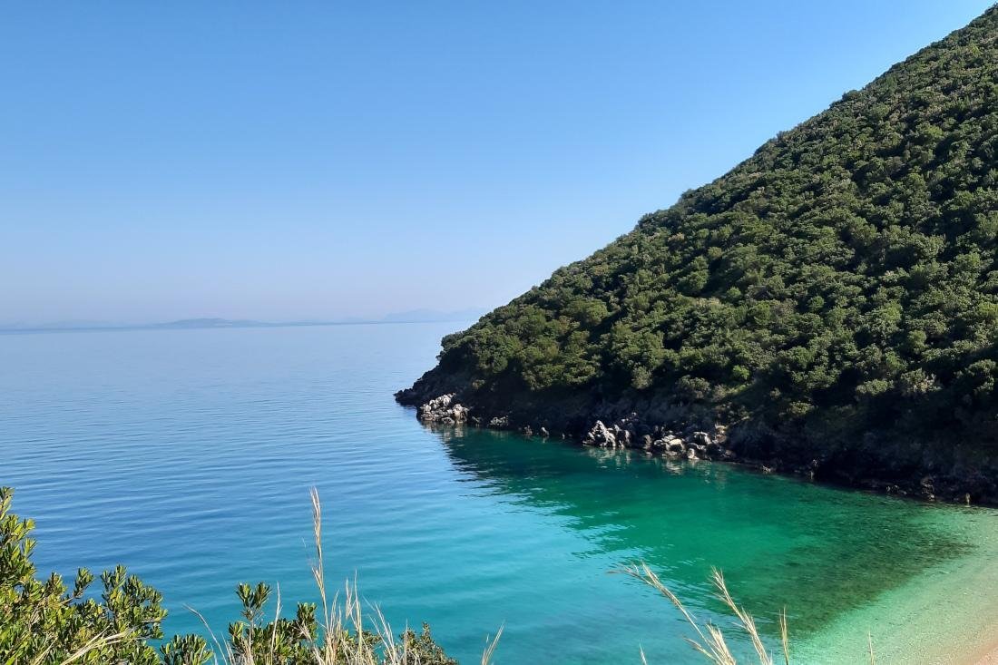 De laatste week in februari leek het wel zomer op Ithaki. De temperaturen stegen naar een zomers niveau. Daarom besloot ik om op een mooie woensdagmiddag samen met een vriendin de auto te pakken en naar een van de meest idyllische stranden van Ithaki te rijden. Het Kaminia-strand ligt op de zuidelijke heft van Ithaki. Het laatste stukje naar beneden kan alleen te voet worden afgelegd. Het onverharde pad was omhuld door kleine, roze en paarse bloemen, die elk voorjaar tevoorschijn komen. Na ongeveer 15 minuten wandelen komt het strand in zicht. Het water is blauwer dan wij ons kunnen herinneren van afgelopen zomer, glad als een spiegel en zeer uitnodigend. Wist u trouwens dat de Grieken zeggen: de zee is zo glad als olie? De groene omgeving van het strand en de heldere blauwe lucht maken het af. 'Kalokairi!' roepen we enthousiast naar een Grieks koppel dat ons tegemoet komt lopen. Ze lopen grinnikend verder, twee gekke Nederlandse meiden die in februari roepen dat het zomer is. Zelf denken ze er nog niet aan om de zee in te gaan!